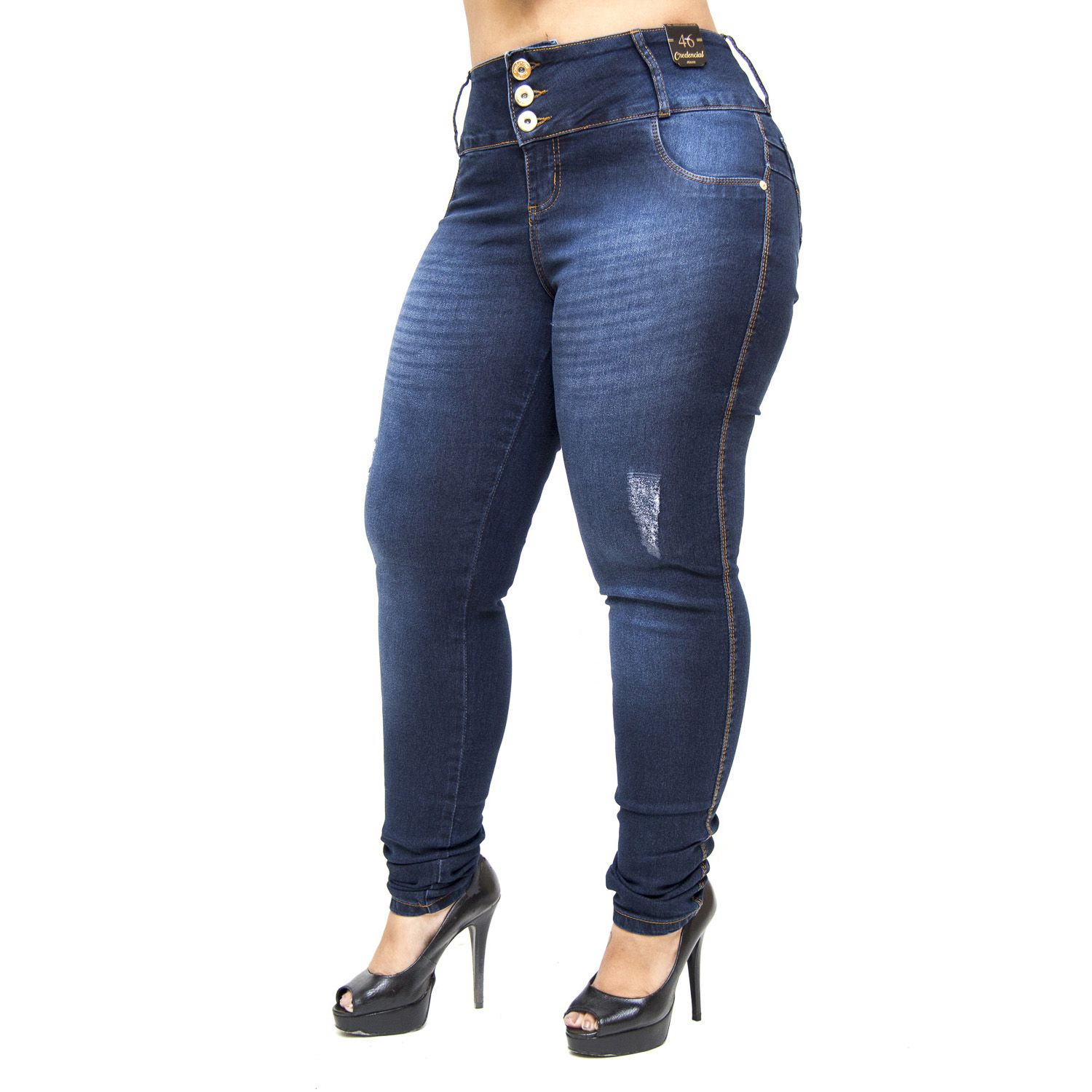 Calça Jeans Feminina Básica Plus Size Skinny Azul
