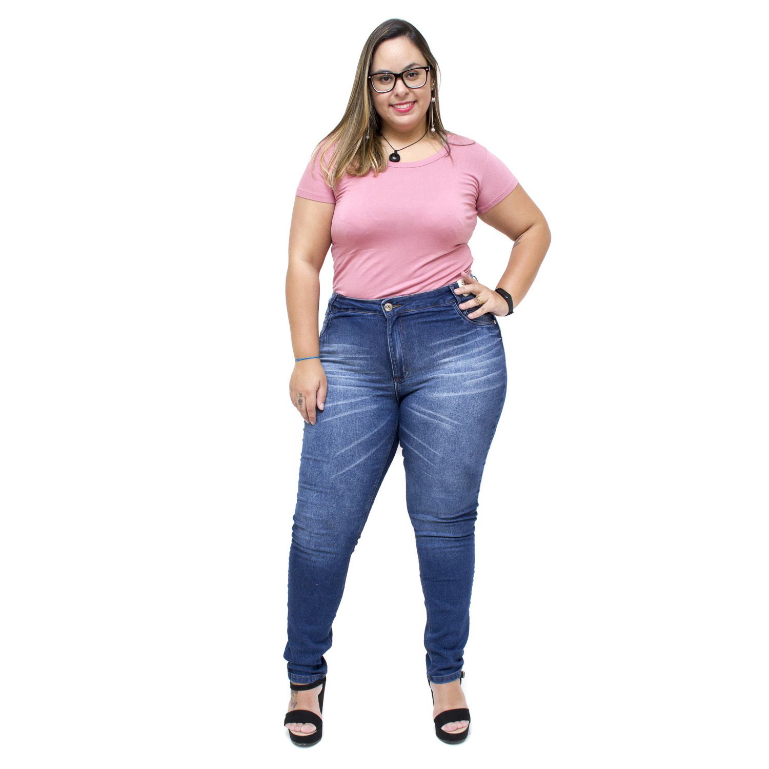 Calça Jeans Feminina Plus Size Skinny Básica Azul Escura
