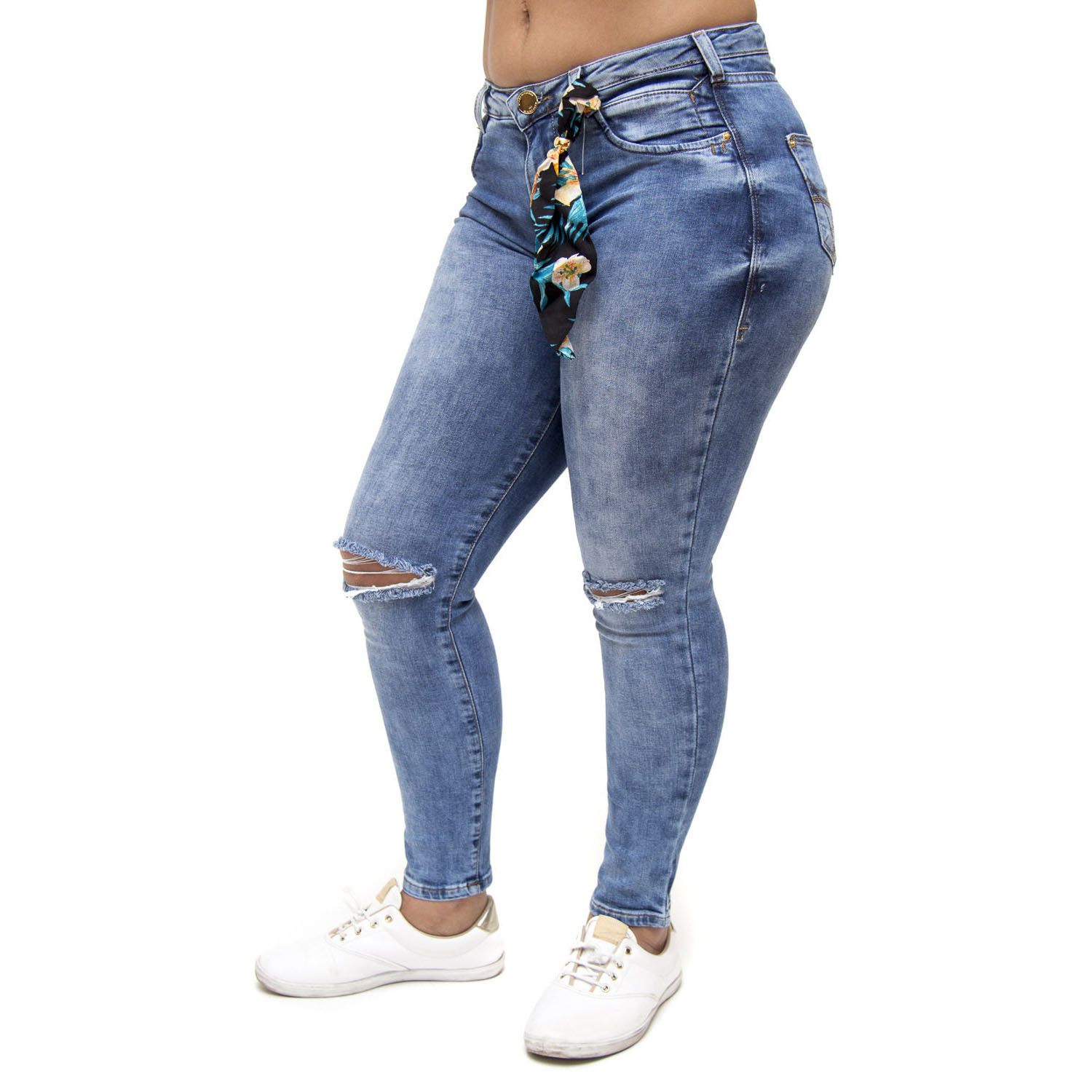 Acompanha o lacinho que dá um destaque único e diferenciado ao jeans