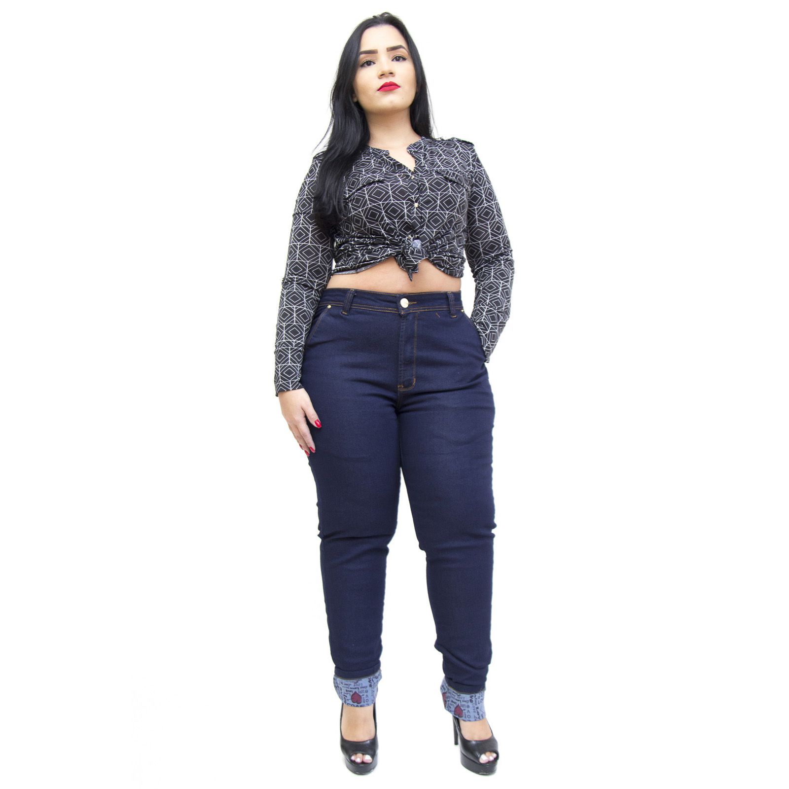 Calça Jeans Feminina Plus Size Skinny Azul Escura